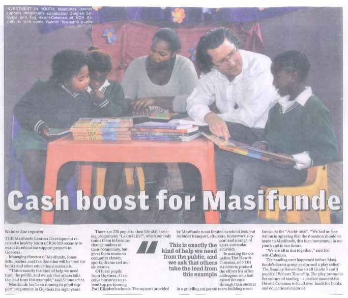 Last week, Tim officially handed over a donation of R34 000.00 to the Masifunde Education fund which operates in Gqebera. Tim explained to those at the function that his colleagues had raised the cash by participating in and winning a grueling sponsorored event known as the Archi race.
