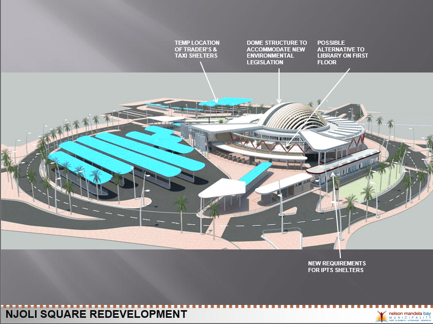 So the Nelson Mandela Metro, ran with this project over many years and really stumbled over its own feet with public participation and who knows what other obstacles we didn’t even know about that stopped the project from getting off the ground. In spite of there being funding in place, in spite of there being a significant amount of public participation, in spite of there being really quite thorough transportation and urban thinking integrated into the IPTS bus transit system, still it was a failure. On the ground now when you go there you see very little development, in spite of the fact that a number of private houses were flattened to make way for this project with money coming from the state to do that. So the Njoli Square project can only be described as a huge failure. Not a failure in developing a vision, not a failure in thinking, not a failure in the ability to get a budget allocated, but a failure in implementation. So there’s an example of public urban renewal, state urban renewal, really having significant limitations.