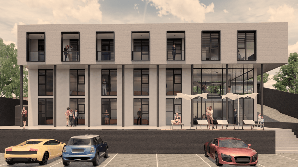 A small apartment complex Tyger Berg Hills looking over the expansive views looking towards Table Mountain to the south and False Bay to the east.