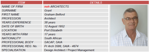 1989 – 1998 Director, Graham Grant Architects cc Port Elizabeth